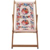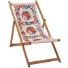 Comfortable solid wood deck chair with a stained finish and interchangeable canvas
