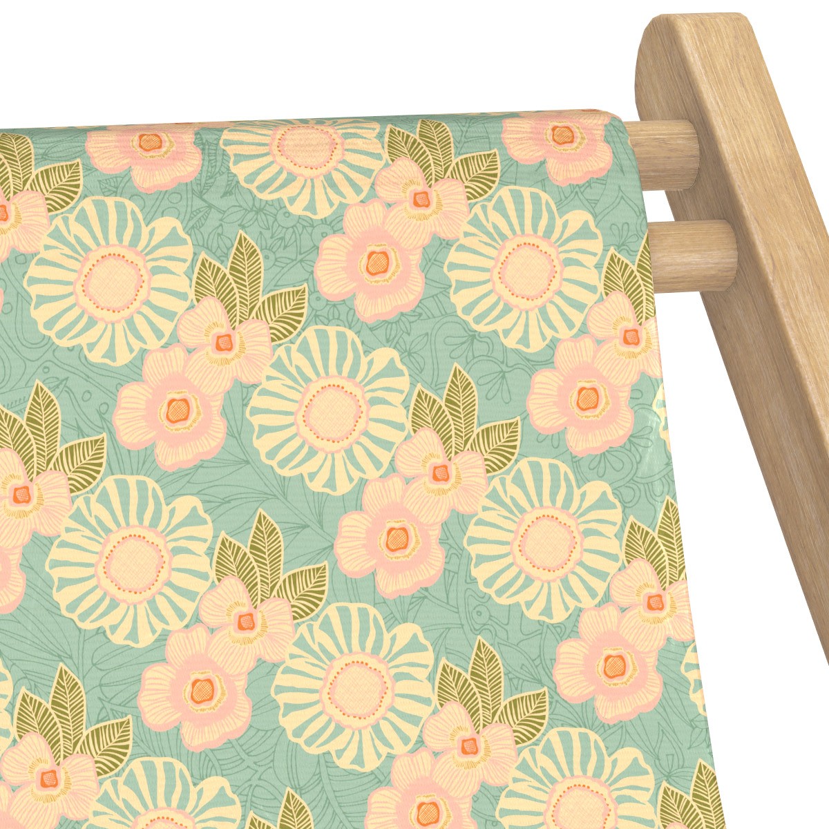 Comfortable solid wood deck chair with a stained finish and interchangeable canvas