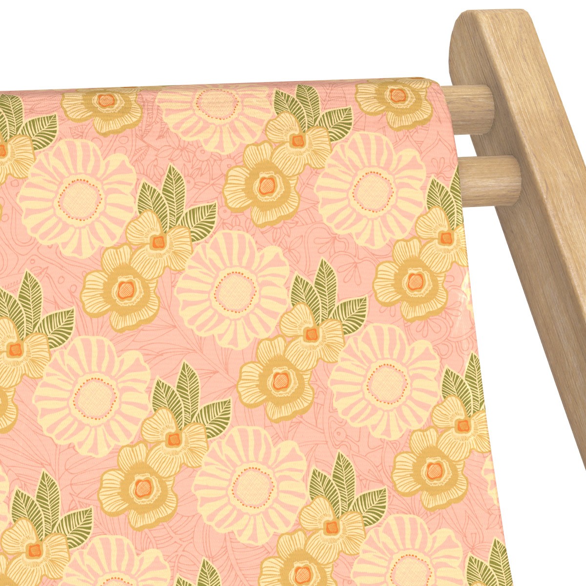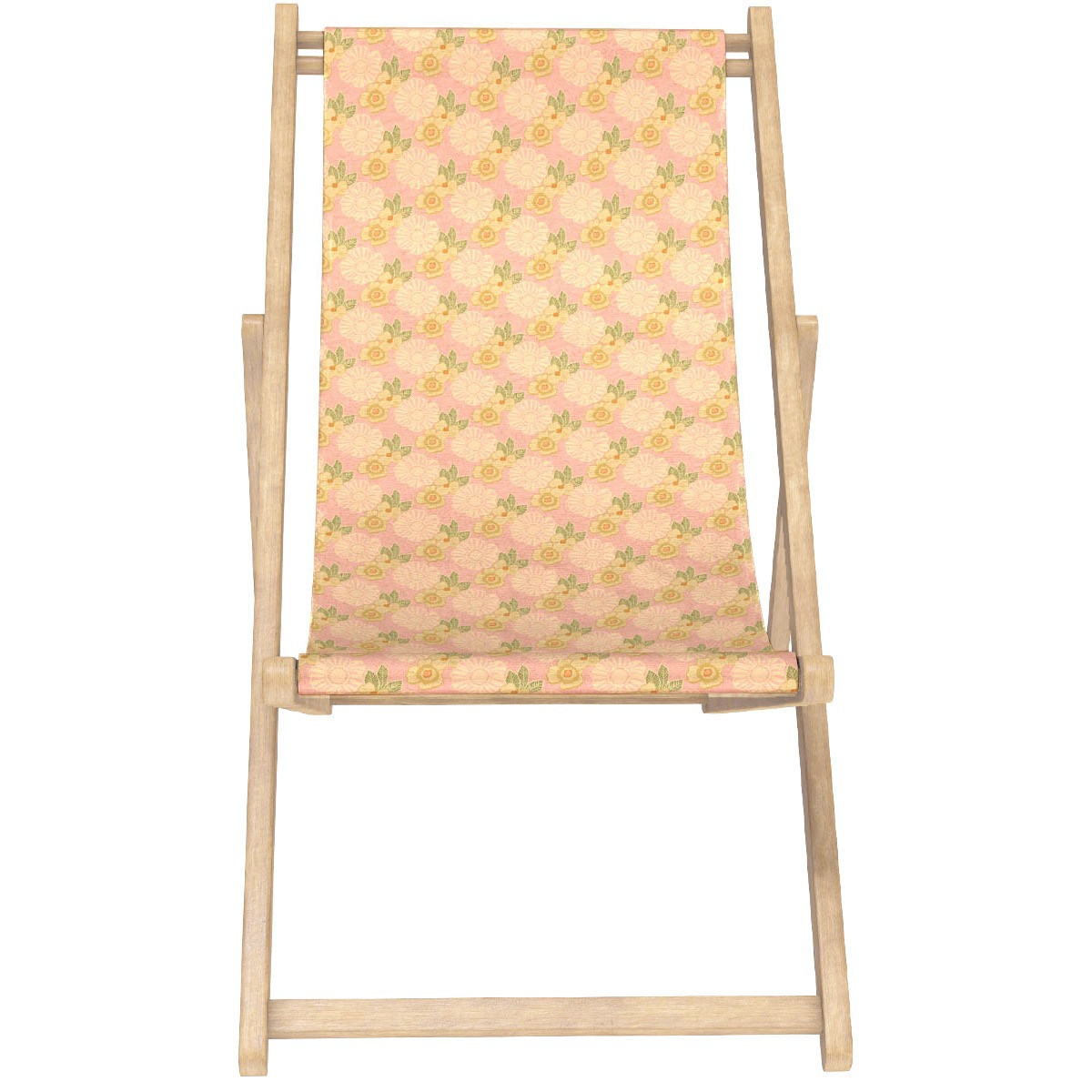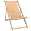 Comfortable solid wood deck chair with a stained finish and interchangeable canvas