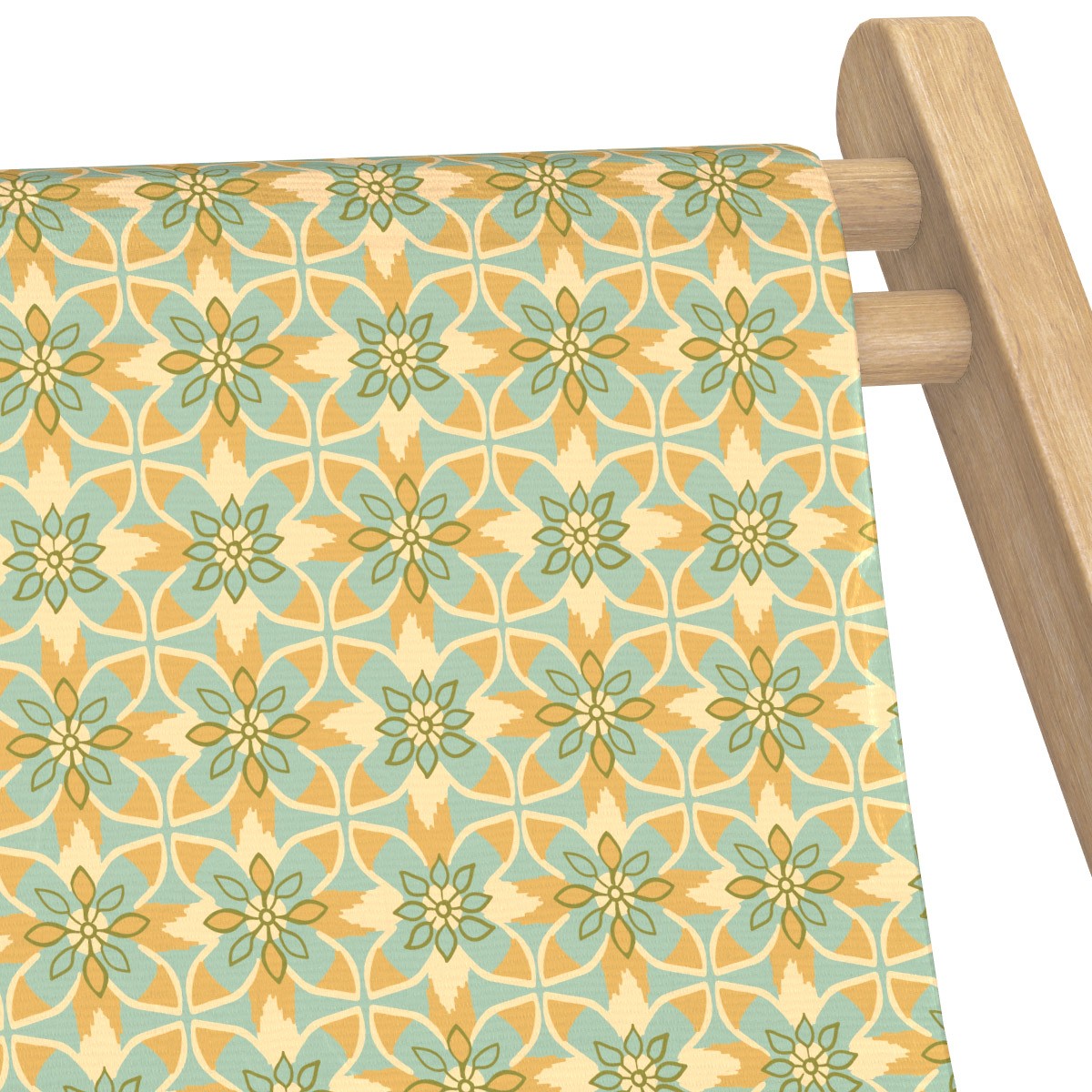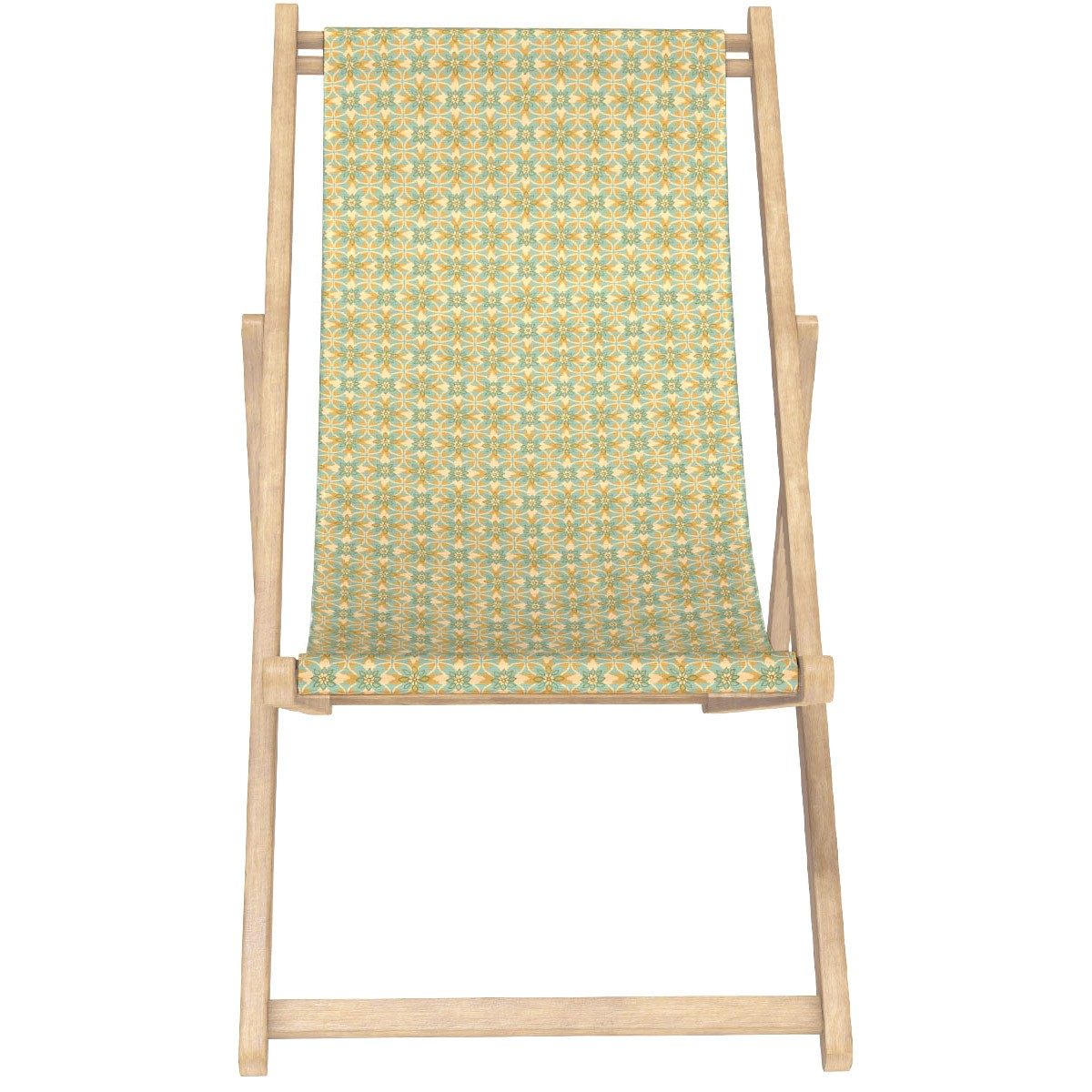 Comfortable solid wood deck chair with a stained finish and interchangeable canvas