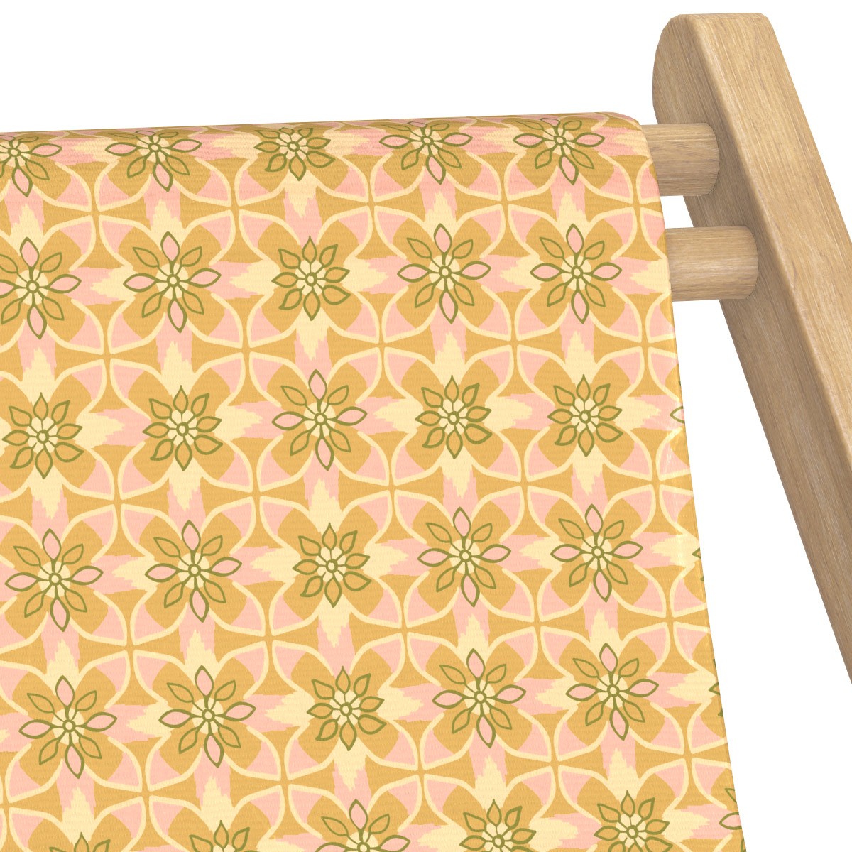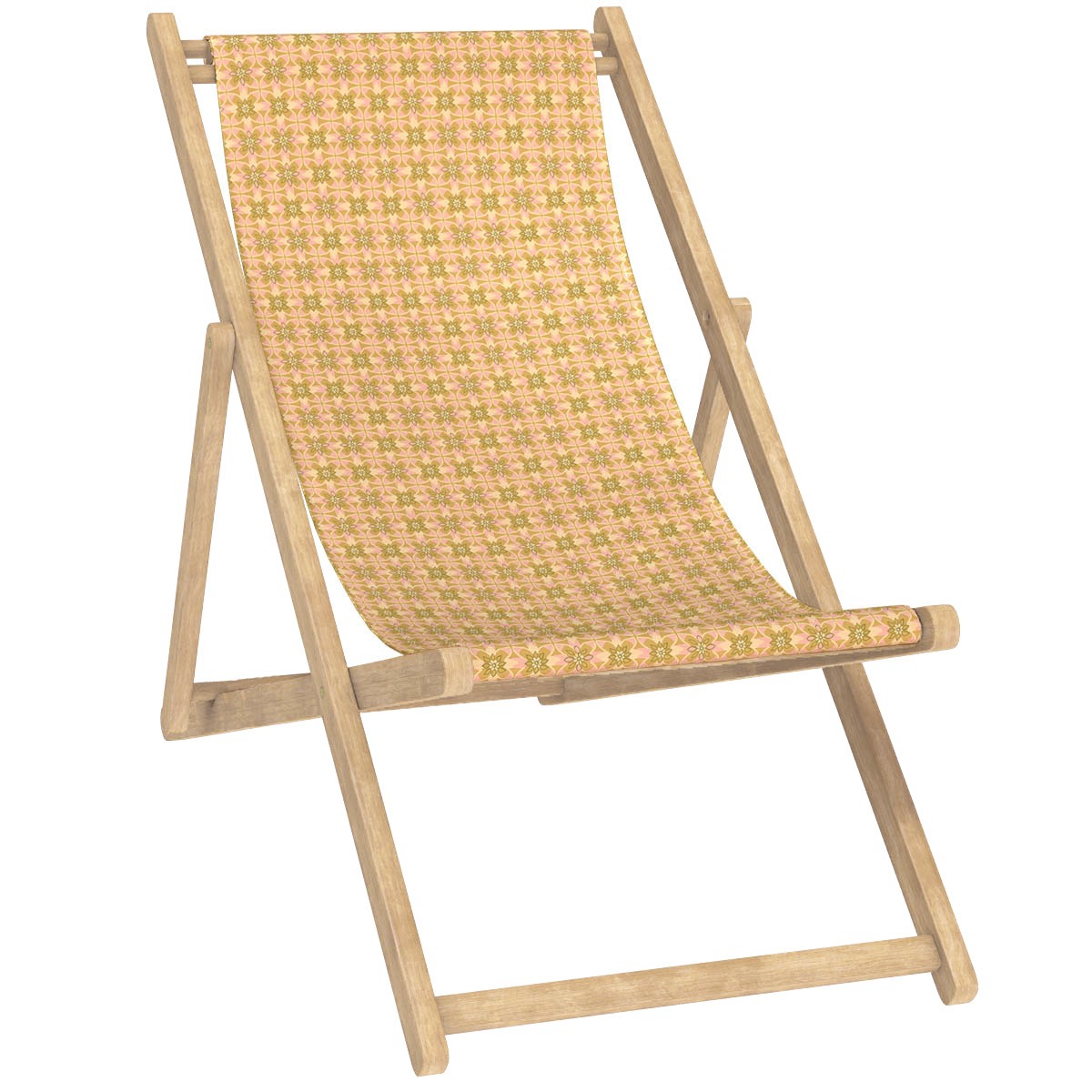 Comfortable solid wood deck chair with a stained finish and interchangeable canvas