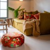 Sa forme ronde, son imprimé en velours fleuri, sa gamme de couleurs font de ce pouf un élément déco absolument magnifique.
