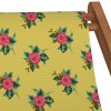 Avec ses petits bouquets vifs sur un jaune solaire, ce transat en bois est une invitation à la bonne humeur. Le motif Rosalie réveille votre terrasse comme un champ de fleurs au soleil.